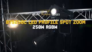 A BTS250C egy 250 W-os, 4 az 1-ben nagy teljesítményű LED-del működik kézi zoommal, és a hagyományos profil spot lámpák helyettesítésére szolgál. A 18°-36°-os all-in-one zoom-tartomány a legszokványosabb 19°, 26°, 36°-os objektíveket fedi le. Színek szivárványa egyetlen 250 W-os LED profilhelyen. Az egész lámpatest egy robusztus ABS-házba van zárva, amely négy fémkeretes redőnnyel, gobo-nyílással, valamint szűrőkerettel és biztonsági kábellel van ellátva.